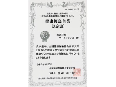 「健康優良企業認定制度」において、一定の成果を収めた企業に与えられる「銀の認定」を取得いたしました。
