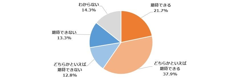高市内閣に期待できるかどうかを聞くと、「期待できる」「どちらかといえば期待できる」が計59.6%を占め、「期待できない」「どちらかといえば期待できない」は計26.1%。「わからない」が14.3%あった。
