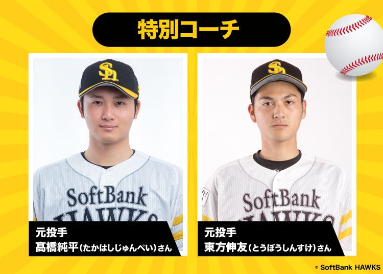 福岡ソフトバンクホークスのOBコーチ2名による、初心者でも楽しめるプログラムを実施します。