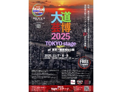 昨年、東京・中野(5月・9月アンコール公演)で開催、翌2025年5月には愛知・名古屋でも開催された、大好評の大道芸イベント「大道芸博」が数多のご要望に応え、2025年11月7日・8日・9日の3日間、ふたたび東京・ 練馬城址公園にて『大道芸博2025 ~TOKYO stage again~ 』と題し公演の開催を決定した。