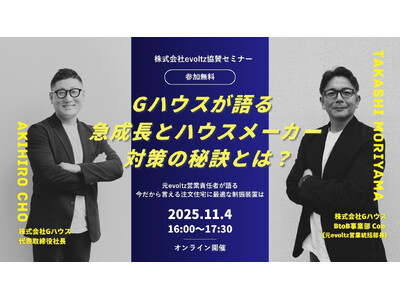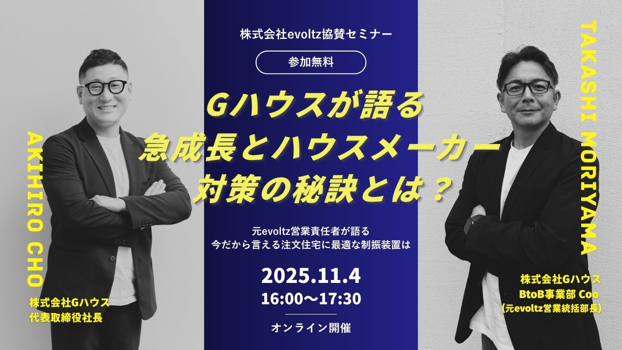株式会社Gハウス(本社:大阪府大阪市旭区、代表取締役社長:趙晃啓)は、制振装置の企画・開発を行う株式会社evoltz(エヴォルツ)の協賛による特別オンラインセミナーを2025年11月4日(火)に開催いたします。