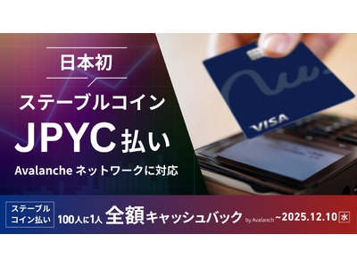 その第一弾として、次世代クレジットカード「Nudge(ナッジ、以下「ナッジカード」)」において返済手段として提供するステーブルコイン「JPYC」払いにおいて、サービス開始時点からAvalancheネットワーク上でのJPYCに対応するとともに、12月10日までの期間限定で「