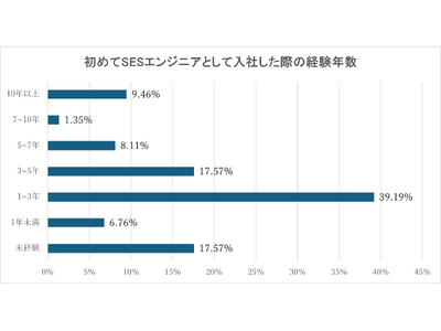 また、SESエンジニアとして入社した際の経験年数は「1~3年」が最も多く、約4割を占める結果となりました。