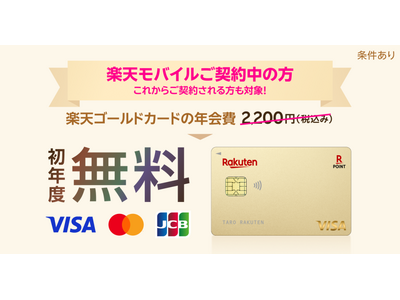 本キャンペーンは、期間中に「楽天モバイル」(注1)ご契約者様が、「楽天ゴールドカード」へお申し込みをすると、「楽天ゴールドカード」の初年度の年会費(税込み2,200円)が無料(注2)になります。すでに「楽天モバイル」をご契約中の方はもちろん、期間中に新たに「楽天モバイル」をご契約いただいた方も本キャンペーンの対象となります。また、「楽天ゴールドカード」へ新規入会される方だけでなく、すでに「楽天カード」の会員様で「楽天ゴールドカード」へ切り替えされる方、2枚目のカードとして「楽天ゴールドカード」をお申込みされる方も対象となります。(注3)
