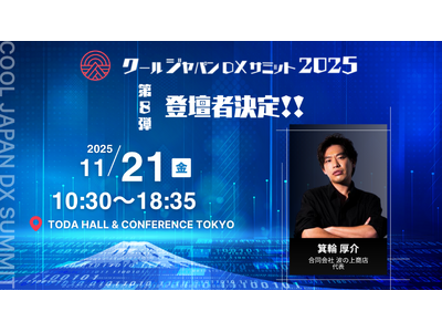 クールジャパンDXサミット実行委員会(運営事務局:Vpon、本社:東京都渋谷区、代表取締役社長:篠原 好孝)は、2025年11月21日(金)に開催する「クールジャパンDXサミット2025」の第八弾、豪華登壇者をご紹介します。
