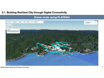 使用された資料からドローン航路データとPLATEAU等の3D都市モデル連携のスライドを掲載