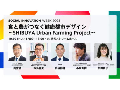 「食と農がつなぐ健康都市デザイン ~SHIBUYA Urban Farming Project~」と題し、都市における食と健康、そして持続可能な暮らしの未来を議論するカンファレンスプログラムを10月30日(木)渋谷ストリームホールにて実施します。食と健康は、都市が持続的に発展するための根幹です。