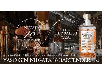 株式会社越後薬草(代表取締役:塚田和志、本社:新潟県上越市、以下越後薬草)は、新潟県内で活躍する16名のバーテンダーと共に、地域の情熱を一杯のジンに込めた特別なクラフトジン「THE HERBALIST YASO GIN NIIGATA 16 BARTENDERS 1st」を開発。約1年にわたる試作と議論を経て誕生した本作は、「佐渡」「日本海」「夕日」をテーマに、“salty & citrus”の味わいで新潟の風土と情景を表現します。新潟のバー文化を次のステージへ導く、情熱と地域愛が融合した“幻の一杯”。2025年11月11日より、プロジェクトに参加した16名のバーテンダーのBARでのみ提供開始。一般流通は行われないわずか200本の限定生産です。