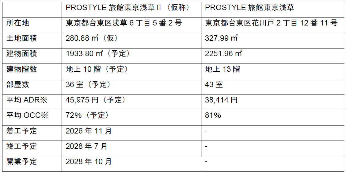 ※「PROSTYLE旅館東京浅草II(仮称)」に関するこれらの見通しは、過去の実績および経営陣の想定に基づいております。実際の結果は大きく異なる可能性があり、ここに記載された目標が達成されることを保証するものではありません。