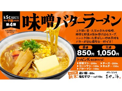キスケ株式会社(本社:愛媛県松山市)が運営する温浴施設「伊予の湯治場 喜助の湯」では、2025年11月1日(土)より、冬季限定メニュー「味噌バターラーメン」の販売を開始いたします。