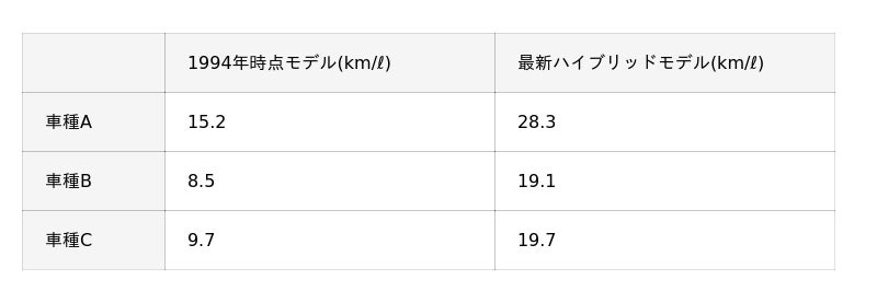 30 年前のモデルの燃費(一例)は以下の表となります。
