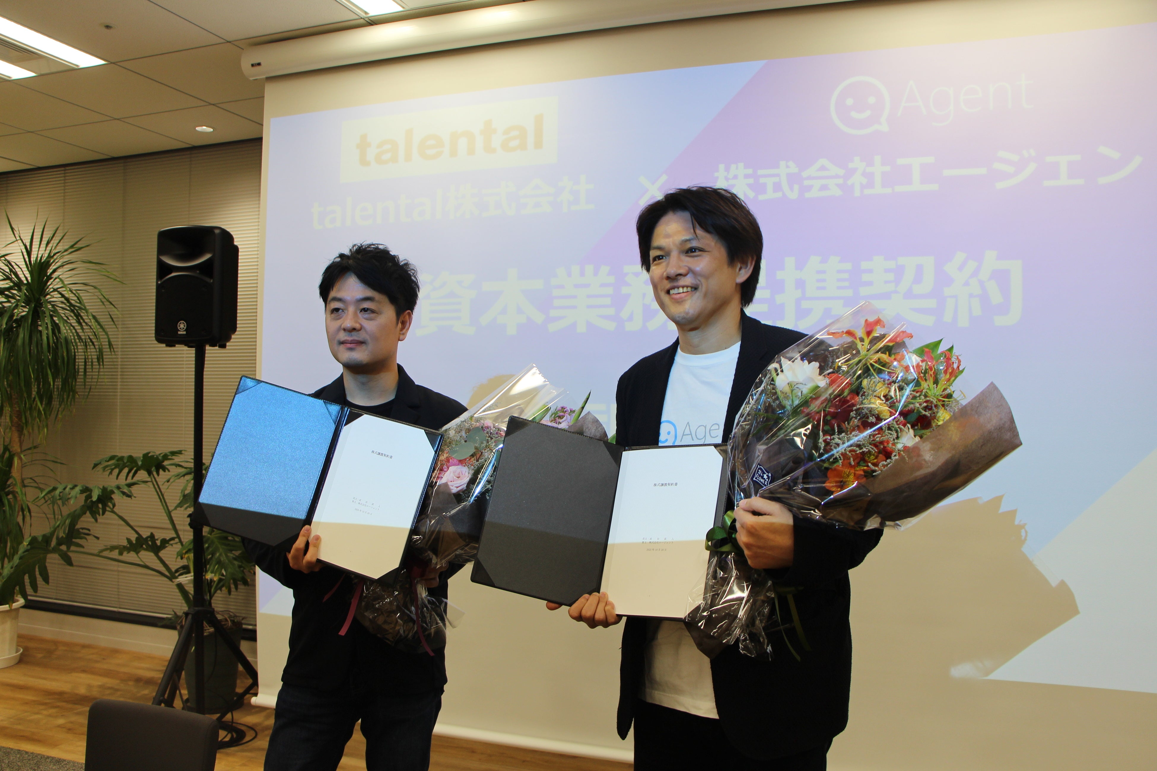 左から、talental株式会社 代表取締役社長 武田直人氏、株式会社エージェント 代表取締役 四宮浩二
