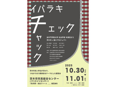 追手門学院大学(大阪府茨木市、学長:真銅 正宏)社会学部社会文化デザインコースの林勇気教授とゼミの学生9名が、大阪府茨木市民と学生との交流の中で、「つながり合う関係性」をテーマに学生が感じ取った茨木市の魅力を4つの作品としてまとめた展覧会「イバラキ・チェック・チャック」を開催します。
