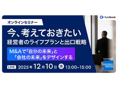 M&A仲介を行う株式会社fundbook(本社:東京都港区、代表取締役: 渡邊和久、読み:ファンドブック、以下「当社」)は、経営者向け無料オンラインセミナーを2025年12月10日(水)に開催いたします。