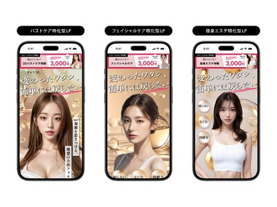 LP最適化による予約導線も強化。バストケア、フェイシャル、痩身など施術特化型LPを搭載広告とも連動し、予約・来店率を向上