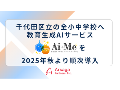 企業のDXを促進するアルサーガパートナーズ株式会社(本社:東京都渋谷区、代表取締役会長兼CTO:小俣泰明、代表取締役CEO:渡邉純平、以下「アルサーガパートナーズ」)は、学校現場専用に設計した生成AIサービス「AI+Me(アイミー)」を、2025年秋より東京都千代田区立の小学校・中学校全校の教員・生徒・児童に向けて、順次導入開始したことをお知らせいたします。