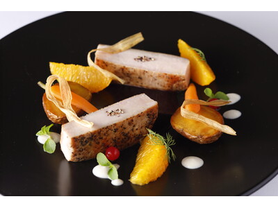“ふくいポーク”ロース肉の低温ロースト牛蒡のピュレとロベールソース オレンジを添えて 2,970円 *パンまたはライス付