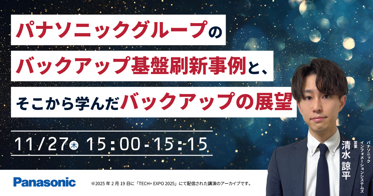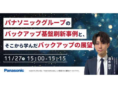 パナソニック インフォメーションシステムズ株式会社は、2025年11月27日(木)『パナソニックグループのバックアップ基盤刷新事例と、そこから学んだバックアップの展望』セミナーを開催します。