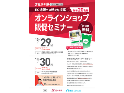 IRISデータラボ株式会社(本社:東京都港区、代表取締役 安達教顕、以下「IRISデータラボ」)は、日本郵便株式会社(本社:東京都千代田区、以下「日本郵便」)と、地域の特産品を販売する事業者向けに、ネット通販を促進させるためのセミナーを10月29日(水)に愛媛県で、10月30日に香川県で初開催いたします。