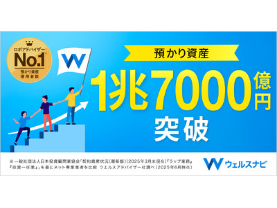 預かり資産・運用者数 国内No.1ロボアドバイザー(※)「ウェルスナビ」を提供するウェルスナビ株式会社(本社:東京都品川区、代表取締役CEO:柴山和久、以下「当社」)は、2016年7月の正式リリースから約9年3カ月となる2025年10月27日時点で、預かり資産1兆7,000億円を突破したことをお知らせします。