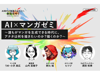 この度UoCは、研究テーマ「AI時代の創造力はどこへ」のもと、創造性ゼミ「AI×マンガ ゼミ ~誰もがマンガを生成できる時代に、アナタは何を描きたいのか?描くのか?~」を新設し、受講生募集を開始しました。本ゼミは、AIで画像が容易に生成できる昨今において、物語性・時間演出・コマ割りといった“マンガの文法”を踏まえ、単なる生成の羅列ではなく“作品”に昇華する実践の場を提供します。全6回・木曜夜(19:00-21:00)に実施し、最終回の自作の発表をへて、完成作品をPDF等で入稿し、小冊子とします(オンライン開催なし、日程は変更の可能性があります)。