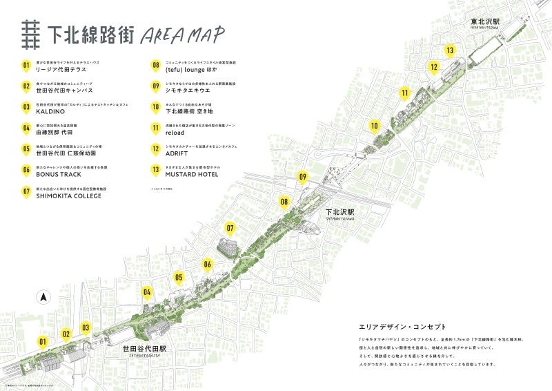 BONUS TRACKは、2020年4月に誕生した、 みんなで使い、みんなで育てていく新しいスペース、新しい “商店街” です。 小田急線の線路跡地である、「下北線路街」のエリアのひとつとして 下北沢駅と世田谷代田駅の間、ちょうど中ほどに生まれました。 個性豊かな飲食店や物販店に加え、 コワーキングスペースやシェアキッチン、広場といった、 訪れる人自身も、新たな文化をつくる仲間になれるような、参加の余白もたくさん用意しています。