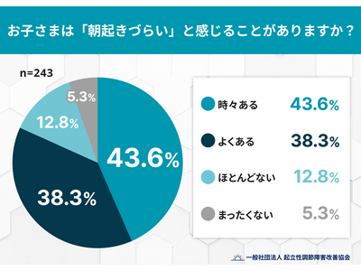 一般社団法人 起立性調節障害改善協会は、小学生~高校生の子どもを持つ保護者243名を対象に、「子どもの朝の不調」に関するアンケート調査を実施。調査の結果、8割以上の家庭で「朝起きづらい」と感じていることが明らかになりました。特に秋~冬の季節変化に体調不良を感じる傾向が見られ、“怠け”ではなく、自律神経の乱れによる「