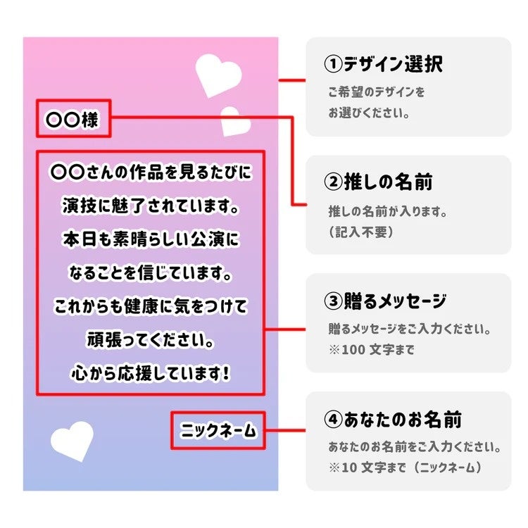 - 終演後、全メッセージをまとめた「デジタルブック」をご本人へ送付
