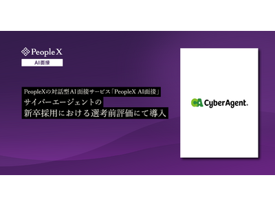 採用から活躍支援まで、AIで人事課題を解決する株式会社PeopleX(本社:東京都新宿区、代表取締役CEO:橘 大地、以下:当社)は、株式会社サイバーエージェント(本社:東京都渋谷区、代表取締役:藤田 晋)に、当社が提供する対話型AI面接サービス「PeopleX AI面接」を導入いただいたことをお知らせいたします。