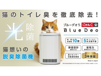 株式会社フジコー(本社:福岡県北九州市、代表取締役社長:萩尾 寿昭 以下フジコー)は、猫想いの脱臭除菌機「ブルーデオS にゃんこモデル」を開発。2025年11月1日(土)より、全国の量販店、専門店、ECサイト等にて販売開始いたします。これまでのブルーデオS型(型名:MC-S201)も、脱臭力には好評を頂いていましたが、今回のブルーデオS にゃんこモデル(型名:MC-S311C。以下「にゃんこモデル」)は、猫の糞尿の臭いに特にフォーカスするとともに猫を気遣った製品に仕上げています。11月から、猫のかわいい動画とともに、(範囲は限定的となりますが)テレビCM、YouTube配信、TikTok配信などを行っていきます。
