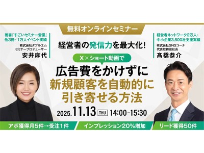 本セミナーでは、経営者自身の発信力を武器にし、SNSと動画の力で企業の成長を加速させる方法をお伝えします。