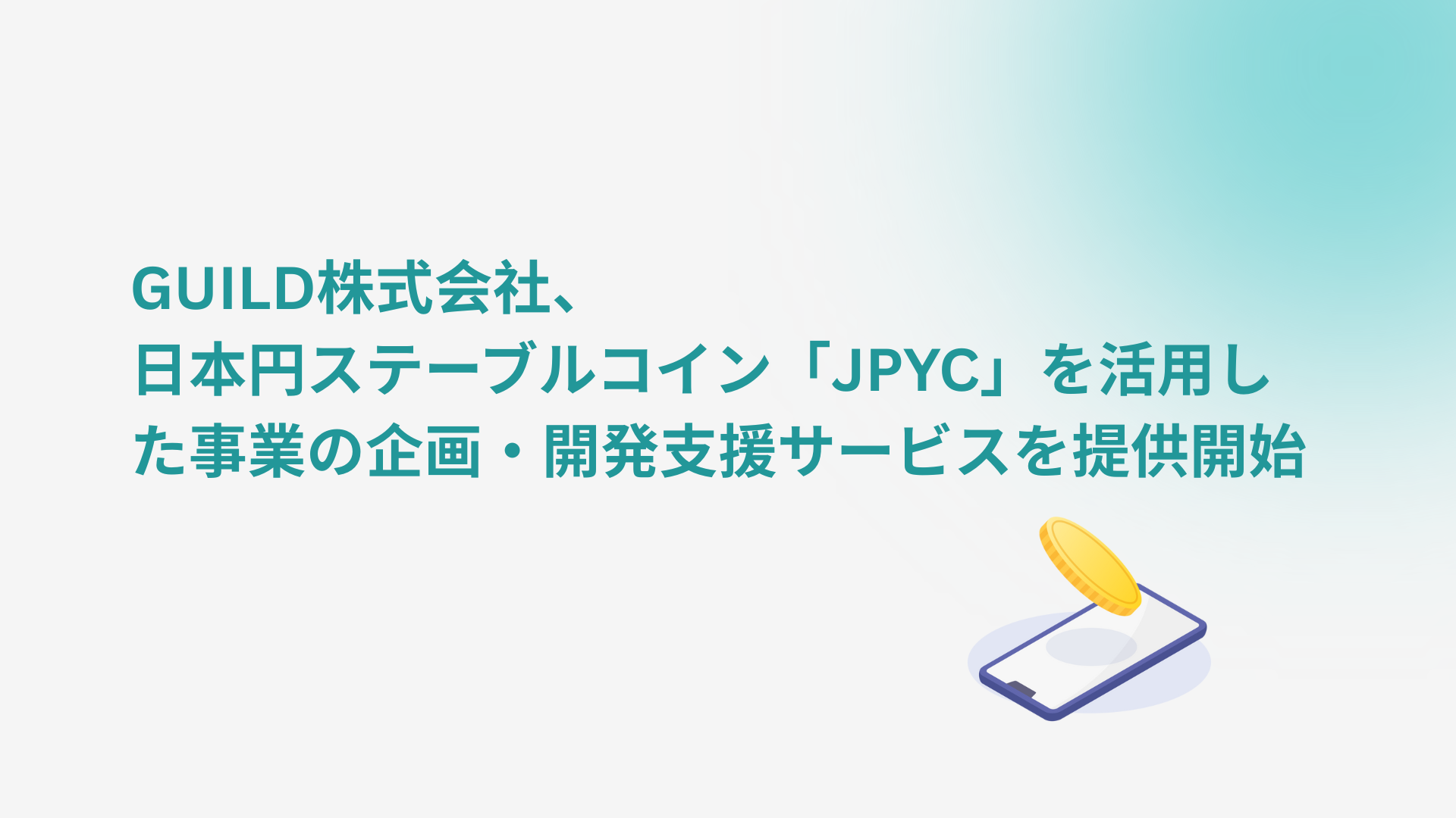 GUILD株式会社(本社:東京都渋谷区、代表取締役:小宮 滉)は、日本円ステーブルコイン「JPYC」をはじめとするステーブルコインを用いた新規事業の立ち上げ、および既存事業への導入を包括的に支援するコンサルティング・開発サービスを開始したことをお知らせします。