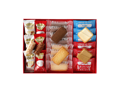 年末年始のご挨拶にもぴったりな、資生堂パーラーの菓子詰め合わせ「ニューイヤーズスイーツ」。今年は祝賀にふさわしい紅白に彩られた、大輪の椿が描かれたパッケージデザインで登場です。こだわりの素材を使った人気の焼き菓子やチョコレートを詰め合わせました。年の瀬や新年の贈りものにはもちろん、大切な方々と集まる団らんの時間のお供としてもおすすめです。