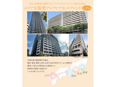 『エリア分散型アルファアセットファンド第十五弾』は、穴吹興産が全国で保有する物件の中から厳選した、関東・東海・関西・九州に点在する優良物件11物件が投資対象です。賃料収入を原資として投資家の皆様へ配当を行う「インカム型」ファンドとなります。