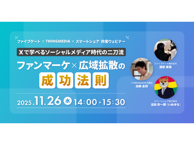 スマートシェア株式会社(東京都渋谷区、代表取締役 小野澤 良友、以下「当社」)は、ファイブゲート株式会社・THINGMEDIA株式会社と共催のウェビナーを開催することをお知らせします。