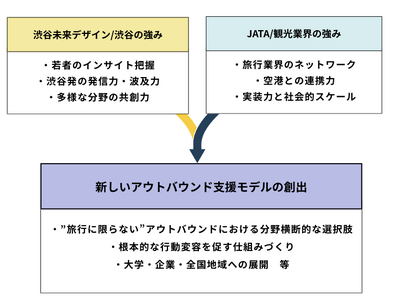 一般社団法人日本旅行業協会(本部:東京都千代田区 以下JATA)は一般社団法人渋谷未来デザインが手掛ける「Go Global Project」に賛同、JATAで現在実施中の海外旅行拡大プロジェクト「もっと!海外へ」と連携し、次世代の若者が世界へ踏み出すための海外旅行の機運醸成・促進を図って参ります。