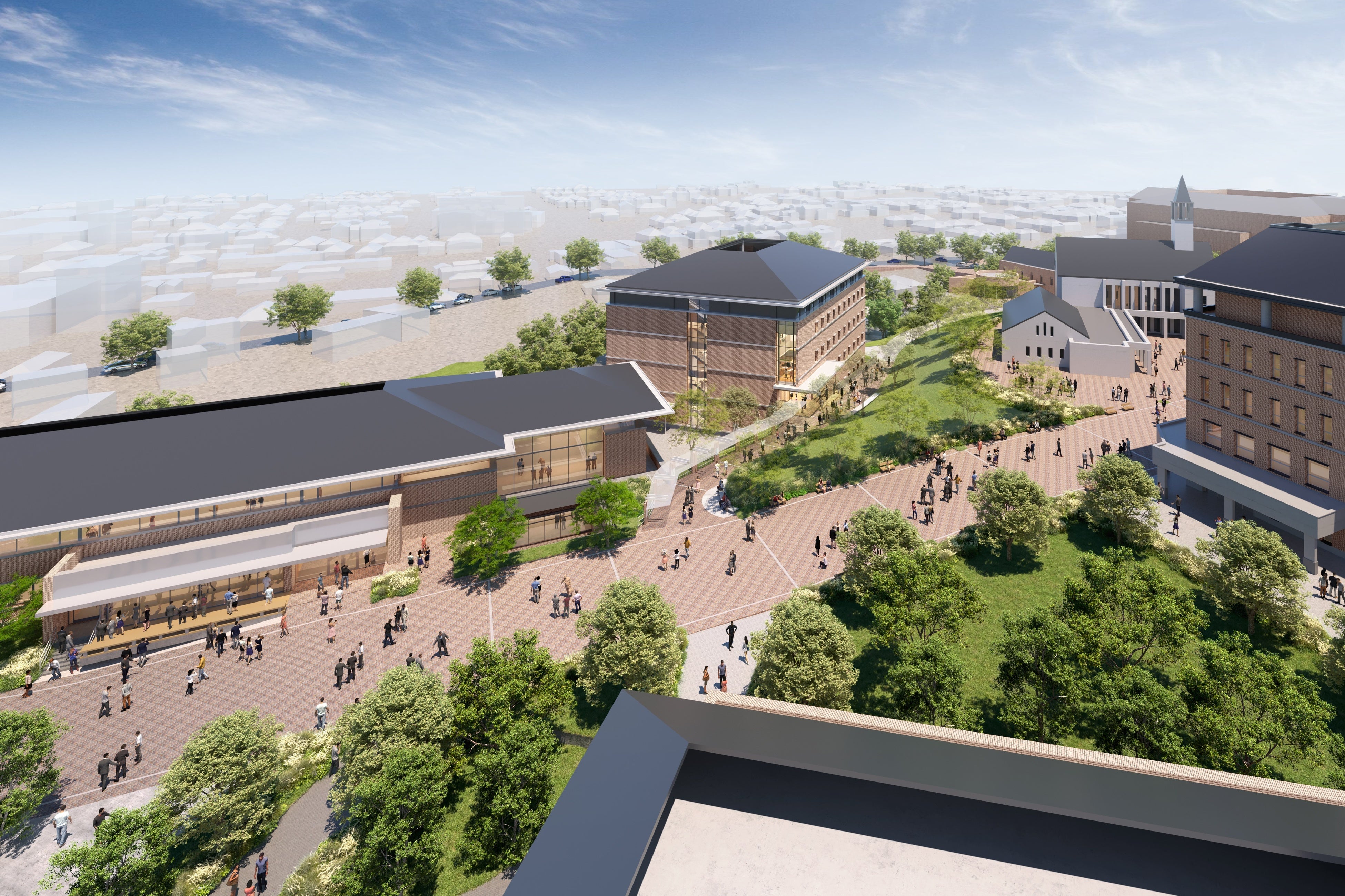 工学部の実験・実習がスタートする2026年度秋学期に合わせ、2026年8月には、地上5階建て、約5,600平方メートル の工学部新棟が竣工予定。ものづくり工房や各種実験室、研究室など、工学の学びを支える施設や機器を整備します。