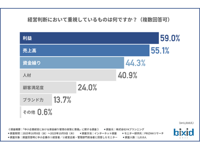 経営判断においては「利益」が最も重視され、「売上高」「資金繰り」も上位に入りました。