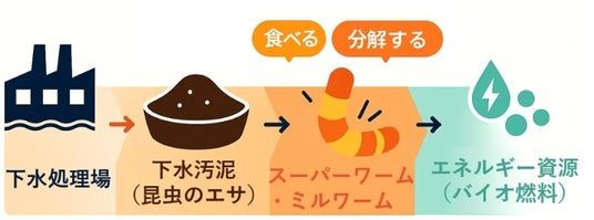 図︓昆虫バイオによる下水汚泥資源化の流れ