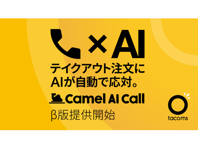 株式会社tacoms(タコムス)は、飲食店の電話対応を自動化する音声AIサービス「Camel AI Call」のβ版提供を開始しました。本サービスは、店舗にかかってくるテイクアウトの電話注文をAIが自動で受付・応対し、オペレーション負荷の軽減と売上機会の最大化を同時に実現します。
