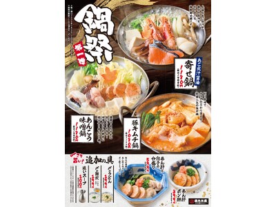 海鮮居酒屋「磯丸水産」をはじめ多数の居酒屋を運営する SFP ホールディングス株式会社(本社:東京都世田谷区 代表取締役社長: 佐藤誠)は、2025年11月4日(火)より「鍋祭」第一弾を開催します。