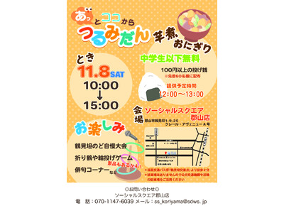 郡山市で障がいのある方の就労移行支援・自立訓練(生活訓練)を展開するソーシャルスクエア郡山店(運営:NPO法人ソーシャルデザインワークス 代表理事:北山剛)にて、2025年11月8日(土)に、ごちゃまぜイベント“あっ”とココから「つるみだん」を開催します。