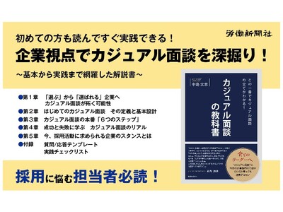 株式会社労働新聞社(本社:東京都板橋区、代表取締役社長:森川泰孔)は、2025年10月31日(金)に『この一冊でカジュアル面談の全てがわかる!カジュアル面談の教科書』(著:株式会社VOLLECT 代表取締役CEO 中島大志)を刊行しました。