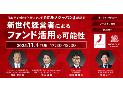 【2025年11月4日(火)オンラインセミナー】日本初の食特化型ファンド『グルメジャパン』が語るファンド活用の可能性