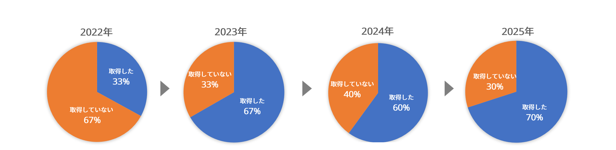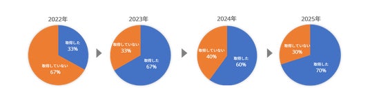2024年度に続き高水準を維持し、4年間でおよそ40ポイント上昇しました。