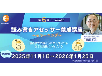 認定NPO法人エッジ(東京都港区 会長:藤堂栄子)は、読み書き困難の検査法を習得して、効果的な支援や学び方を提案できる人材を養成する【読み書きアセッサー養成講座(eラーニング)】第6期生を募集します。