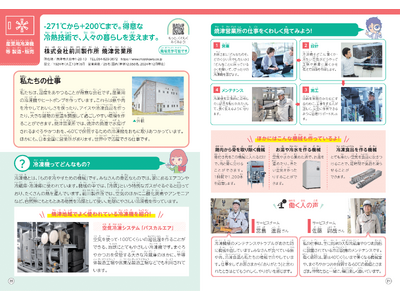 世界シェア40%以上を誇る産業用冷凍機をはじめ、各種産業機械の製造・販売ならびにプラントの設計・施工を手がける株式会社前川製作所(本社:東京都江東区、代表取締役 社長執行役員:前川 真、以下「当社」)は、「小学生のためのお仕事ノート 焼津市」に掲載されることをお知らせいたします。