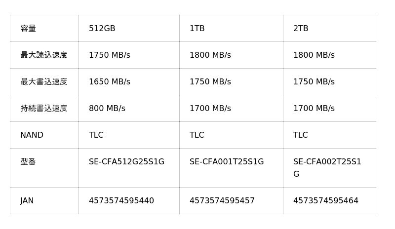 Type Aにおいても、最新コントローラーと最適化されたNAND技術の組み合わせによって高い持続速度を実現しており、長時間・高ビットレート収録でも安定性を維持できる点が大きな強みです。