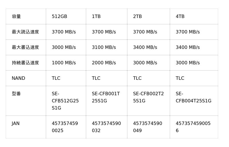 加えて、最大4TBの大容量をラインアップしており、プロフェッショナルな制作環境に対応します。ただし、4TBモデルについては対応カメラが限定され、2025年8月時点でRED製シネマカメラのみで動作確認されています。