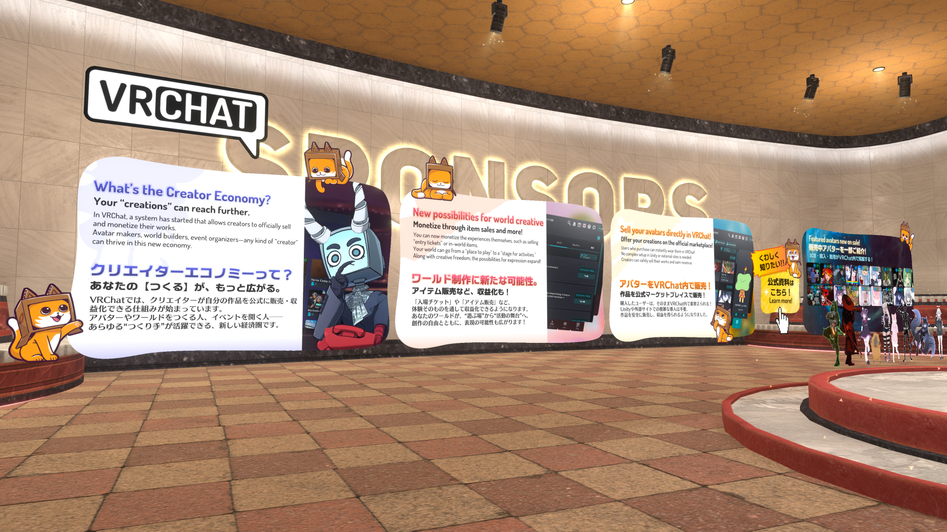 VRChat公式と大型コラボレーションを行い、今注目のクリエイターエコノミーシステムを紹介しています。